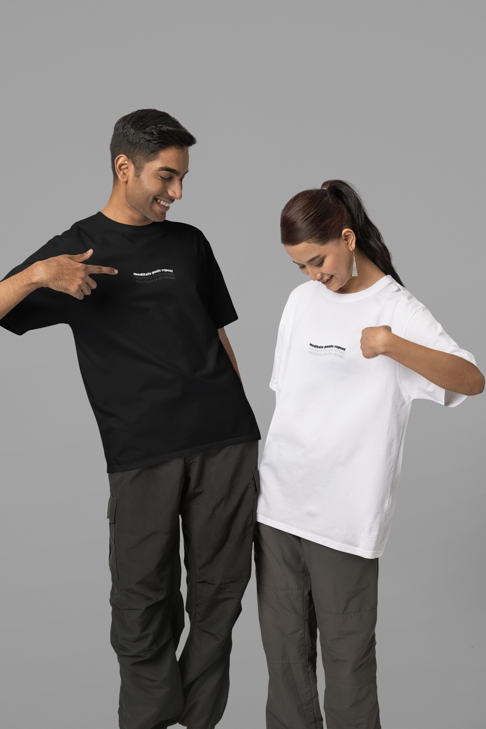 MEDITATE, PANIC, REPEAT - Black Unisex Oversized Standard T-Shirt